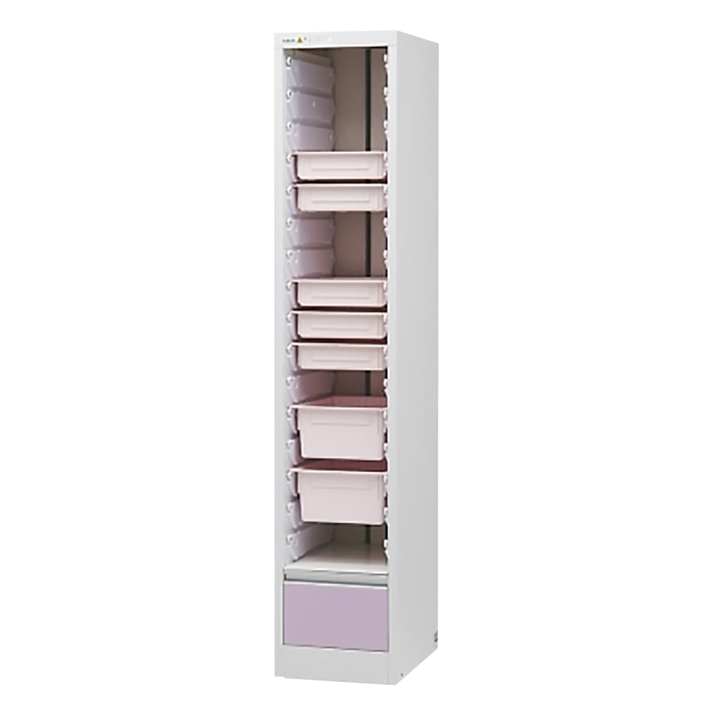 感染管理対策として、ユニット下部には遮蔽板付きソフトクローズ引出しを採用しています。 引出しにもアルティアトレーを入れることができます。 引出しにホコリなどが入らない遮蔽板付きです。型番:NT-350-HL 幅×奥行×高さ(mm):350×475×1810 トレー収納数:ハーフ深型/9枚・浅型/17枚 材質:本体/スチール(メラミン焼付塗装)、レール/ABS樹脂 組み立て式 ※本商品にトレーは付属していません。 ※トレー収納数は引き出し収納を含みます。