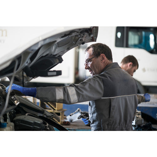 カタログ品番:11-816-9 特長:●アンセルの特許技術であるFORTIX[[TM上]]テクノロジーを使用したニトリルコーティングにより、高い耐久性とグリップ力、通気性を発揮します。●手の自由な動きを可能にし作業効率を向上します。●薄いライナーとコーティングを組み合わせることで、素手のような使用感と快適性があります。●精密作業で指先の繊細な動きを要する作業者に適しています。●効率的に不純物を抽出する独自の洗浄プロセスにより、清潔かつ快適な装着感の手袋を提供します。●シリコンフリーなので部品にシリコン汚染が発生することはありません。●人間工学に基づく超薄設計により、装着していることを忘れる手袋です。 用途:●組み立てと仕上げ用。●工場のメンテナンス。●金属製作。●品質管理。●自動車関連。●建築・建設関連。 仕様:●色:ブルー/ブラック●サイズ:L●全長(cm):21.9〜26.1●手のひら周り(cm):18.0●中指長さ(cm):7.8●厚さ(mm):0.87●ゲージ数:18●リストカラー:ブラウン●18ゲージ編●EN388:2016規格:耐摩耗レベル4、耐切創レベル1、耐引裂レベル2、耐突刺レベル1、EN ISO耐切創レベルA●すべり止め付●シリコンフリー 材質/仕上:●繊維部:ナイロン、スパンデックス●すべり止め部:発泡ニトリルゴム