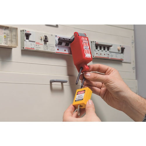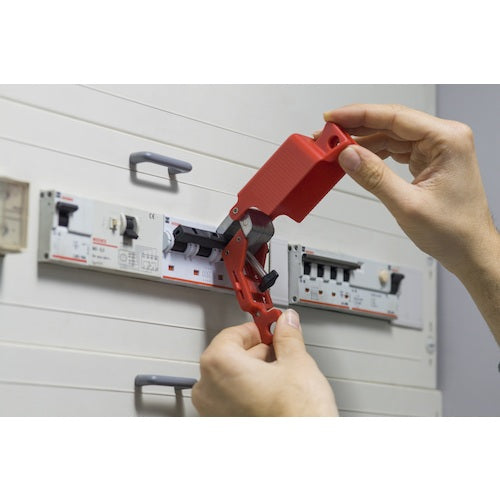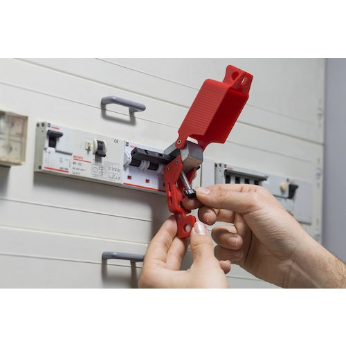 カタログ品番:090232 特長:●ブレーカーのロックアウトに最適です。●調整機能付きサポートで本体を固定できます。●鋸歯状(ギザギザ)の歯がついており、スイッチをしっかり固定できます。●ボルトはステンレス素材で丈夫です。●化学薬品と高温への耐性に優れています。●ノブ付きで締付けには工具不要です。 用途:●ブレーカー用ロックアウトに。 仕様:●色:赤●高さ(mm):36●縦(mm):102.5●横(mm):38●適合ブレーカーレバー(mm)厚さ:〜8●適合ブレーカーレバー(mm)高さ:〜25●取付パドロックシャックル径(mm):6●タイプ:トグル付●トグル付 材質/仕上:●本体:ナイロン●ボルト:ステンレス