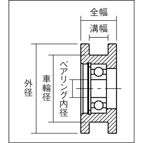カタログ品番:GRL30S-H 特長:●中荷重仕様です。●レールは市販のミガキ四角鋼がご利用できます。 用途:●各種スライド扉や搬送用。 仕様:●ベアリング内径(mm):6●外径(mm):30●車輪径(mm):22●全幅(mm):12●適合するローラーピン:RLP0606●溝幅(mm):5 材質/仕上:●ベアリング:スチール●外周部:機械構造用炭素鋼(S45C)●止め輪:スチール