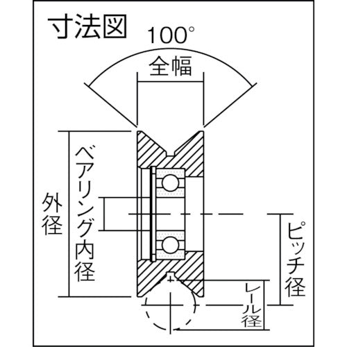 カタログ品番:GRL30J-Y 特長:●中荷重仕様です。●対象レールが丸鋼でレールに切粉が残りにくいです。●レールは市販のミガキ丸鋼がご利用できます。 用途:●各種スライド扉や搬送用。 仕様:●ベアリング内径(mm):6●外径(mm):30●全幅(mm):12●レール径(mm):10〜12●適合するローラーピン:RLP0606●ピッチ径(mm):17〜18.3●溝部角度(°):100 材質/仕上:●ベアリング:スチール●外周部:ポリアセタール(POM)●止め輪:スチール