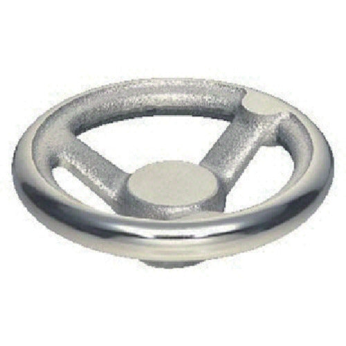 カタログ品番:NV125 特長:●定番の朝顔型ハンドル車です。握り用メネジはありません。 仕様:●ハンドル径(mm):125●ボス径(mm):35●スポーク数:3●ハンドル高さ(mm):45●ボス高さ(mm):29 材質/仕上:●鋳鉄(FC材)クロムメッキ 注意:●握り取付け用タップ穴がありません。
