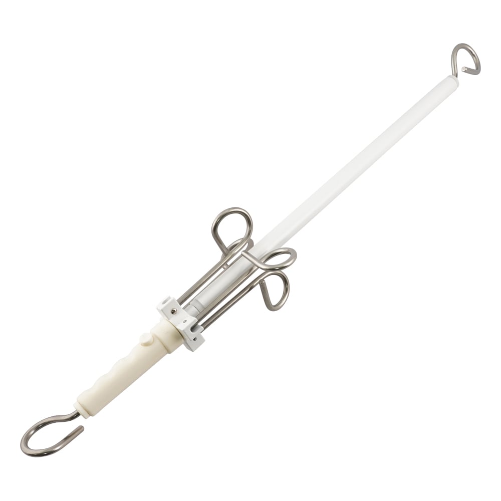 プッシュボタンで任意の長さに設定できます。フック長:使用時/270mm、折りたたみ時/80mm