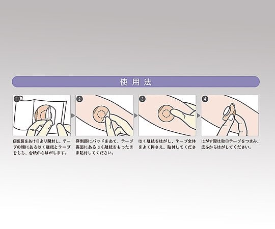 低刺激で透湿性・柔軟性・通気性・吸水性に優れています。 皮膚の角質を保護し、取り口テープ付きではがしやすく痛みも軽減します。材質:テープ部/PP(ポリプロピレン)不織布、パッド部/セルロース系不織布、粘着剤/アクリル系粘着剤 EOG滅菌済(個包装) 粘着部サイズ(mm):φ36 パッド部(mm):φ16×3 入数:1箱(80枚入) JMDNコード:34864000 医療機器届出番号:13B2X00218131270