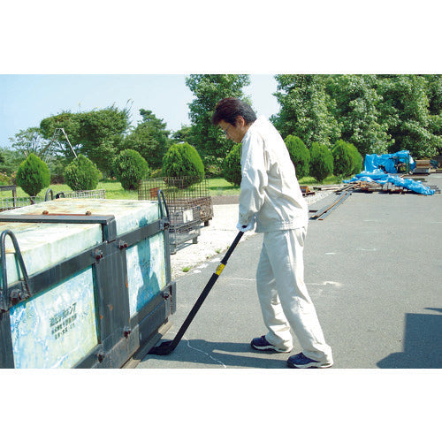 カタログ品番:RB-10C 特長:●先端を差し込んでてこの原理で操作します。狭い場所での作業に最適な短T型持ち手です。●底部にローラーが付いているので、従来のバール作業と比べてずらし作業がしやすく、床面も傷つけにくいです。 用途:●ワークの持ち上げ・異動作業 仕様:●全長(mm):1200●先端寸法(mm):90×2●許容荷重(t):1●ローラー部:MCナイロン●仕様●ニッケルメッキ 材質/仕上:●本体:スチール、ローラー:MCナイロン