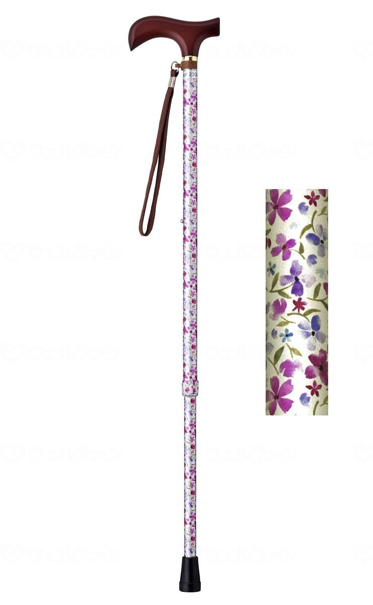 ウェルファン夢ライフステッキ 柄杖伸縮型(スリムタイプ) 水彩花シルバー