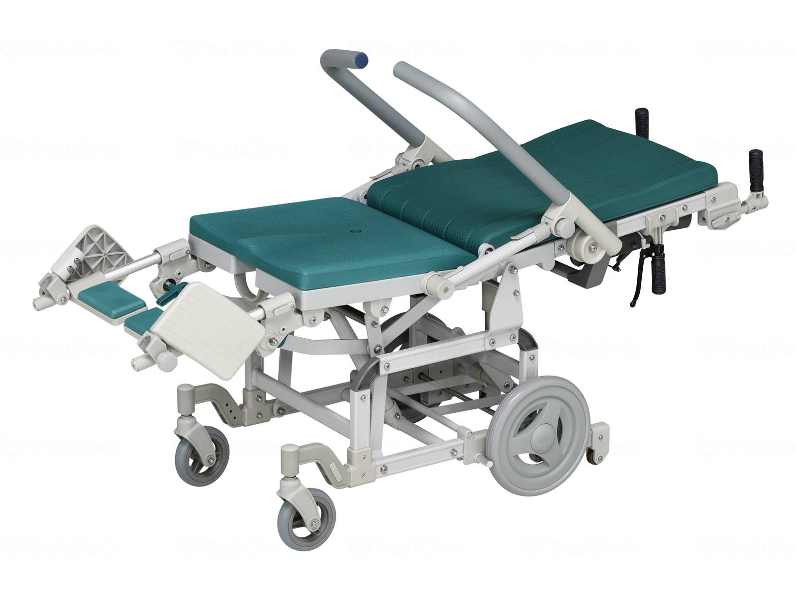 メーカー品番:「HN021」 サイズ・重量 重量約21.5kg コメント フルフラットリクライニングシャワーキャリー 材質・原材料 材質 ○本体:アルミ、ステンレス、合成樹脂成形品 ○シート:EVA ○車輪:天然ゴム 規格 1台 規格詳細 ○サイズ:幅56.5×奥行110(147)×高さ106(66)cm ○座面高:47(56.5)cm ※()は最大リクライニング時