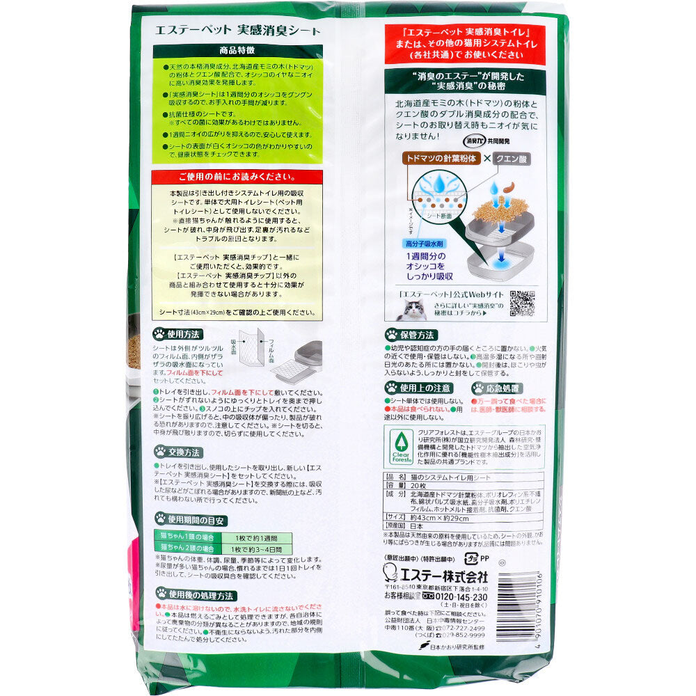 エステーペット 実感消臭シート 猫用システムトイレ 20枚入 1 個