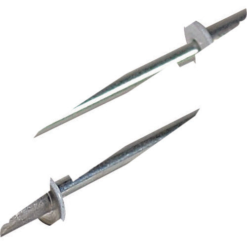 カタログ品番:CNSA42WMP 特長:●必要な仕事に無駄なく使える少量サイズです。●片側から複数の母材をワン・アクションで締結できます。 仕様:●かしめ板厚(mm):1.0〜3.2●リベット長(mm):6.5●フランジ径(mm):6.4●リベット径(mm):3.2●下穴径(mm):3.3〜3.4●せん断強度(N):960●引張強度(N):1350●エコパック入り●入数(本):65 材質/仕上:●ボディ:アルミニウム(A5154) 注意:●適正かしめ板厚、下穴径は当社指定寸法を守り安全率を十分に考慮して施工してください。●作業前に必ず、ご使用になるリベッターの取扱説明書をよくお読みください。●寸法・重量などは公称値ですので、多少の数値の上下があります。