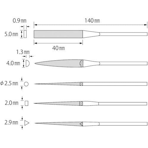 エビ ダイヤモンドヤスリ(精密用) 12本組 5種類セット S12-SET 1S