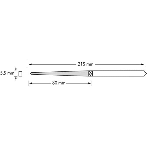 カタログ品番:K5-K 特長:●ダイヤモンド砥粒をヤスリ台金に均一に分布させ、砥粒の鋭利な切れ刃を強固に保持して表面に突出させているため、最初の鋭い切れ味のまま長寿命を保ちます。●タイプ(精密用;仕上げ研削・修正・すり合わせなど、鉄工用:荒研削・剛性を要する重研削など)、種類(5・8・10・12本組:大きさの単位)、形状(平:平面用、半丸:R部用、丸:丸穴用、角:角穴用、三角:各部用)の中から用途に合ったものを選択ください。●ご希望の砥粒や特殊形状のご相談にも応じます。 用途:●超硬合金、焼き入れ鋼、セラミックス、ガラス、強化プラスチックなどの硬質材の研削加工に最適。●超硬合金、焼き入れ鋼、セラミックス、ガラス、強化プラスチックなどの硬質材の研削加工に最適。●バイト、エンドミル、ガラスなどの面取り、金型のすり合わせ、金型の磨き。 仕様:●粒度(#):140●タイプ:5本組●形状:角●全長(mm):215●刃長(mm):80●柄の形状:角●幅(mm):5.5●粒度:#140 注意:●8本組、10本組というのはヤスリの大きさを表す通称であって、5本入り、8本入り、12本入りという意味ではありません。●寸法は呼び寸法です。寸法精度が必要な場合はご相談ください。