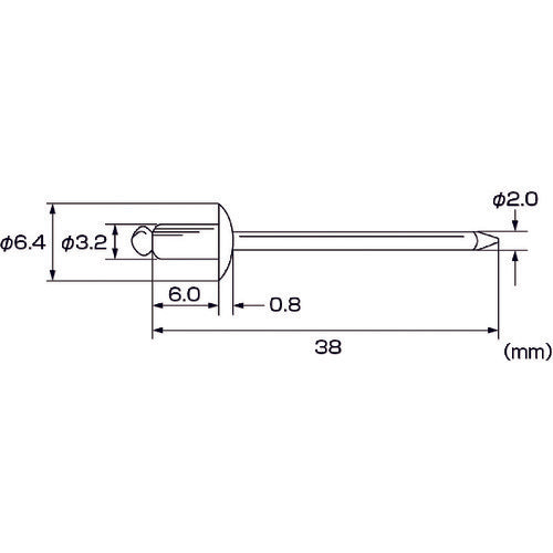 カタログ品番:NST42MP 特長:●必要な仕事に無駄なく使える少量サイズです。●片側から複数の母材をワン・アクションで締結できます。 用途:●耐食性にすぐれ、水回りや屋外に最適です●マンドレルもボディもステンレス製なので、強度が必要な場所に最適です。●必要な仕事に無駄なく使える少量サイズです。●片側から複数の母材をワン・アクションで締結できます。●溶接に比べて作業の省力化や生産性の向上にメリットがあります。 仕様:●かしめ板厚(mm):1.6〜3.2●リベット長(mm):6.0●フランジ径(mm):6.4●リベット径(mm):3.2●下穴径(mm):3.3〜3.4●せん断強度(N):2350●引張強度(N):2700●エコパック入り●RoHS指令適合品●パック入数(本):45●ボディ材質:ステンレス(SUS305)●マンドレル材質:ステンレス(SUS304相当) 材質/仕上:●ボディ:ステンレス(SUS305)●マンドレル:ステンレス(SUS304相当) 注意:●適正かしめ板厚、下穴径は当社指定寸法を守り安全率を十分に考慮して施工してください。●作業前に必ず、ご使用になるリリベッターの取扱説明書をよくお読みください。●作業前に必ず、取扱説明書をよくお読みいただき、十分理解された上で正しくご使用ください。●寸法・重量などは公称値ですので、多少の数値の上下があります。