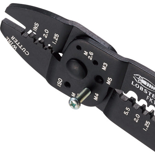 カタログ品番:FK1A 特長:●グリップにはエラストマー樹脂を採用しています。●ボルトをカットする時も、握りやすく手が痛くなりにくいグリップです。 用途:●自動車の整備に。●工場のメンテナンスに。●制御機器の配線用。●電話・電信の配線用。●オーディオ・テレビ・家電機器のメンテナンスに。●工作や各種ホビー向け。 仕様:●全長(mm):235●圧着端子:オープンバレル端子、裸圧着端子(P・B)スリーブ用●圧着端子([[MM2]]):1.25、2、5.5●圧着端子([[MM2]])裸端子用:1.25、2、5.5●圧着端子([[MM2]])Bスリーブ:1.25、2、5.5●圧着端子([[MM2]])オープンバレル端子用:1.25、2●ボルトカッター:M2.6〜M5●ワイヤーストリッパー[[MM2]]:0.75〜5.5●オープンバレル端子/裸圧着端子(P・B)スリーブ用●ボルトカッター:M2.6〜M5●ワイヤーストリッパー:0.75〜5.5[[MM2]] 材質/仕上:●本体:スチール●グリップ:樹脂 注意:●活線(電気が流れている線)には使用しないでください。●屋内配線などの重要な圧着には使用しないでください。●摺動部には定期的に注油してください。●摩擦・ガタを防ぎます。