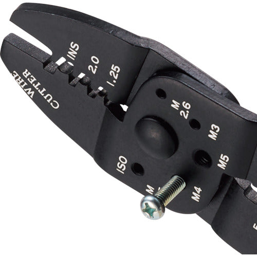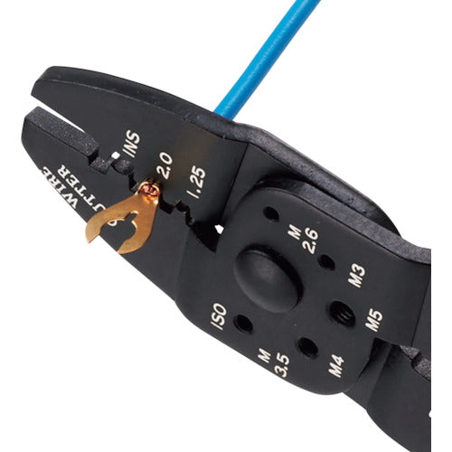 カタログ品番:FK5A 特長:●グリップにはエラストマー樹脂を採用しています。●ボルトをカットする時も、握りやすく手が痛くなりにくいグリップです。 用途:●自動車の整備に。●工場のメンテナンスに。●制御機器の配線用。●電話・電信の配線用。●オーディオ・テレビ・家電機器のメンテナンスに。●工作や各種ホビー向け。 仕様:●全長(mm):225●圧着端子:オープンバレル端子●圧着端子([[MM2]]):1.25、2●ボルトカッター:M2.6〜M5●ワイヤーストリッパー[[MM2]]:0.75〜5.5●オープンバレル端子用 注意:●活線(電気が流れている線)には使用しないでください。●屋内配線などの重要な圧着には使用しないでください。●摺動部には定期的に注油してください。●摩擦・ガタを防ぎます。