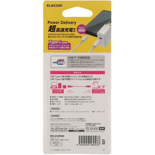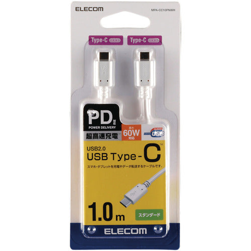 エレコム スマホ・タブレット用USBケーブル USB(C−C) Power Delivery対応 1.0m ホワイト MPA-CC10PNWH 1 本