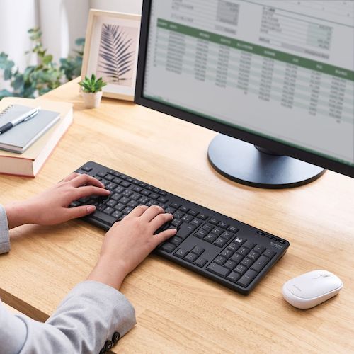 カタログ品番:TK-FDM116SKTBK 特長:●音が気になる場所や時間帯での使用に最適なワイヤレスタイプの静音フルキーボードです。●数字入力に便利なテンキー付きのフルキーボードで、エクセルなどの作業を効率化します。●さらに、日々のパソコン操作に安心をプラスする抗菌仕様でワイヤレスタイプの静音フルキーボードです。 用途:●Windows、Chrome OS、macOS用。 仕様:●色:ブラック●キー数:109キー+9キー(日本語配列)●インターフェース:USB●対応OS:Windows 10、Windows 8.1、 macOS Big sur (11)、 Chrome OS ※各OSの最新バージョンへのアップデートや、サービスパックのインストールが必要になる場合があります。※最新情報は対応表をご確認ください。●キー方式:メンブレン●キーピッチ(mm):19●コネクタ形状:USB(A)オス●適合OS:Windows 10、Windows 8.1、 macOS Big sur (11)、 Chrome OS ※各OSの最新バージョンへのアップデートや、サービスパックのインストールが必要になる場合があります。※最新情報は対応表をご確認ください。●外形寸法(mm):キーボード本体:幅442.8×奥行139.8×高さ26.8mm(スタンド含まず)/幅442.8×奥行139.8×高さ35.3mm(スタンド時)、レシーバー:幅19.0×奥行14.5×高さ6.0 セット内容/付属品:●動作確認用単4形アルカリ乾電池×2 注意:●最新情報は対応表をご確認ください。