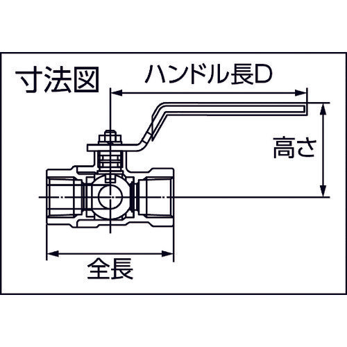 カタログ品番:T-20 特長:●流水方向を切り替える必要のある配管に最適です。 用途:●冷温水・不凍液・油・エアー・ガス(可燃性・毒性以外)用。 仕様:●呼び径A:20●呼び径B:Rc3/4●全長(mm):68●高さ(mm):51.5●ハンドル長D(mm):101●最高許容圧力(MPa):1.0●使用温度範囲(℃):-15〜120●適合流体:冷温水・不凍液・油・エアー・ガス(可燃性・毒性以外)●内径(mm):15●許容圧力:1.0MPa(-15〜120℃) 材質/仕上:●黄銅(C3771BE)