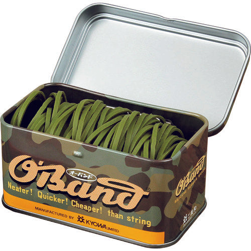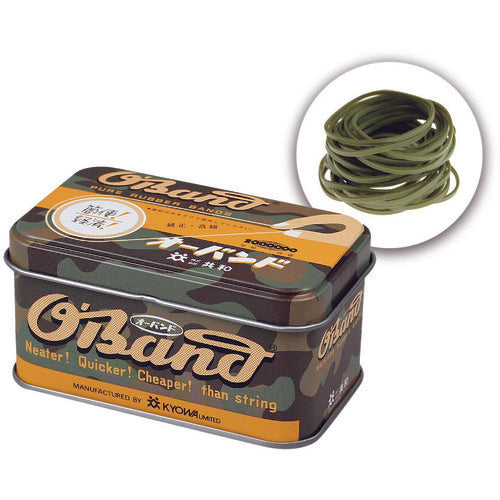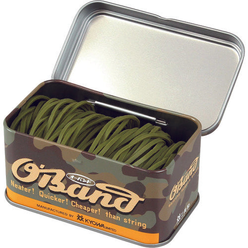 カタログ品番:GGC-040-CF 特長:●オーバンド缶シリーズにカモフラ缶が仲間入りしました。●ちょっと太めなカーキ色の輪ゴムが入っています。 用途:●包装用、結束用。 仕様:●色:カーキ●番手(#):#16●切幅(mm):2●折径(mm):60●厚さ(mm):1.1●色:カーキ●厚さ:1.1mm●カモフラ缶サイズ:L57mm W92mm H48mm 材質/仕上:●天然ゴム