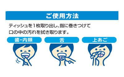 ・水を使わず、簡単にお口の中を拭き取れる口腔ケア用ウエットティシュです。