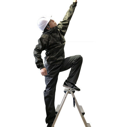 カタログ品番:7570-45-L 特長:●動きやすいストレッチ素材を使用したレインウェアです。●晴れた日にはウインドブレーカーとして快適に着られます。●袖口調節タブで雨の浸入を防ぎます。●安全性を高める背面リフレクター付きです。 用途:●雨天時の作業・レジャーなどあらゆる用途に。 仕様:●色:ブルーカモ●サイズ:L●身長(cm):170〜180●胸囲(cm):90〜98●耐水圧:10000mm以上●着丈(cm):71●適合身長(cm):170〜180●胸幅(cm):56●頭周り(cm):54●透湿度:5000g/[[M2]]・24hrs●耐水圧:10000mm以上 材質/仕上:●ポリエステル100%(TPUラミネート) 注意:●上下別売りです。