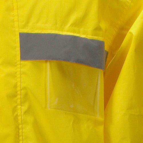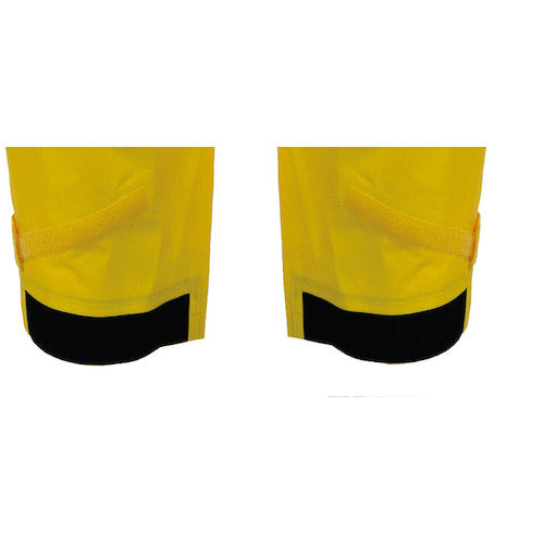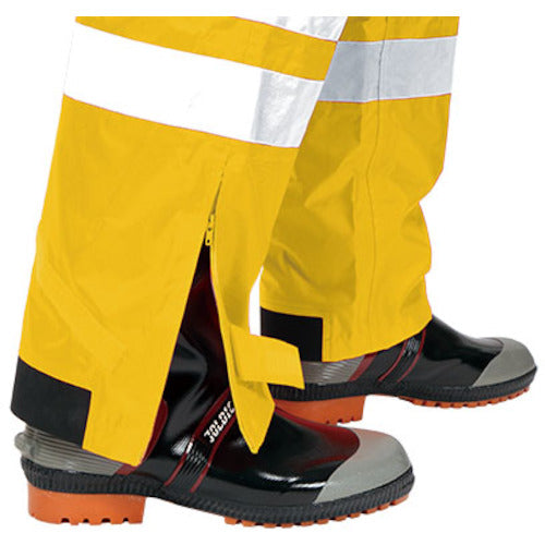 カタログ品番:3810-11-L 特長:●反射材を効果的に配置し夜間の安全性を確保します。●視認性の高い作業用レインスーツです。●地面に擦れやすいパンツのかかと部分を摩擦に強い生地で補強しました。●フードは現場での安全な視界を確保するために、クリア部分を広くとってあります。●フード取り付け部には高さ調節が可能なスナップボタンを配置。●パンツは靴を履いたままでも着脱しやすいよう、裾ファスナーになっています。●幅調節のマジックテープも付いているので、不要なばたつきがありません。 用途:●安全対策を伴う作業全般に。 仕様:●色:イエロー●サイズ:L●身長(cm):170〜180●胸囲(cm):90〜98●ウエスト(cm):78〜88●股下(cm):74●耐水圧:10000mm以上●着丈(cm):80●適合身長(cm):170〜180●ウエスト(引張)(cm):112●胸幅(cm):62.5●頭周り(cm):61●適合胸囲(cm):90〜98●適応胴囲(cm):78〜88●高さ調節機能付フード●取り外し可能なクリアケース付(左胸と背中の2か所)●パンツ裾幅調節により靴を履いたままの着脱が可能 材質/仕上:●表地:ポリエステル100%(PVCラミネート)●裏地:ポリエステル100%(ジャケットのみ裏メッシュ) セット内容/付属品:●収納袋