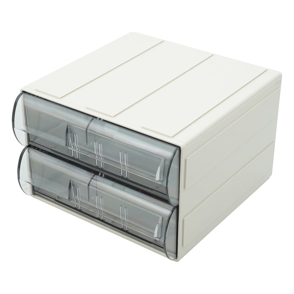 A5判以下のサイズを取り揃えています。 上下左右に連結して、自由に組み合わせできます。 引出内は、仕切板(別売)で2~9分割できます。本体外寸法:幅186×奥行192×高さ125mm 引出内寸法:幅167×奥行162×高さ53mm×2個 材質:本体/ABS樹脂、引出/PS(ポリスチレン) 2~9分割可 カラー:クリアー(透明) ※仕切板は別売です。 型番:HA5-052 RoHS2 (EU)2015/863 対応 [RoHSについて]
