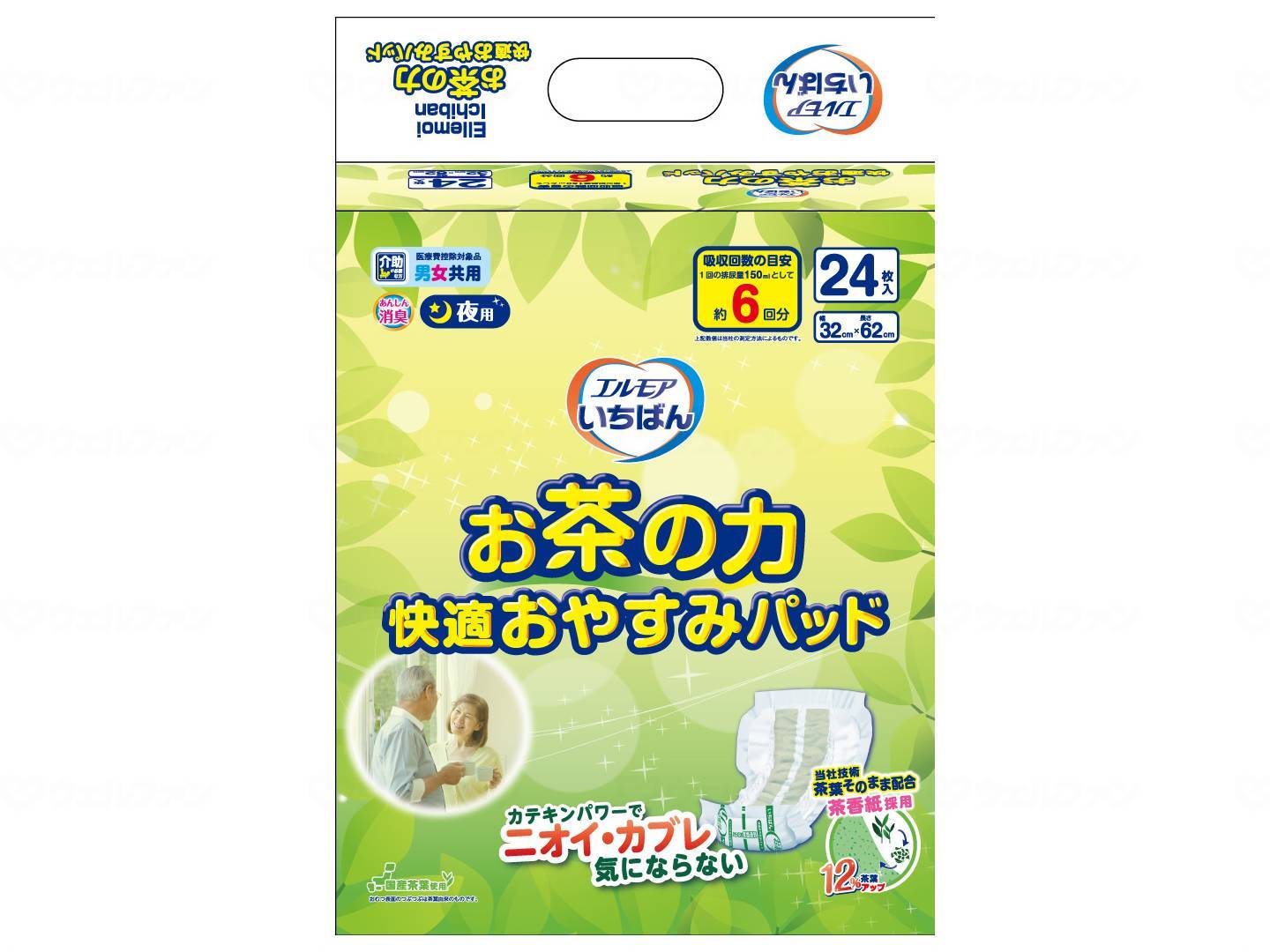 メーカー品番:「475181→475841」 サイズ・重量 高さ290mm×幅240mm×奥行195mm 重量2020g 特長 介助が必要な方 男女共用 あんしん消臭 夜用 吸収回数の目安:1回の排尿量150mLとして約6回分 上記数値は当社の測定方法によるものです。 カテキンパワーでニオイ・カブレ気にならない 当社技術 茶葉そのまま配合 茶香紙採用 12%茶葉アップ 国産茶葉使用 おむつ表面のつぶつぶは茶葉由来のものです。 コメント ○当社技術 国産茶葉をそのまま使用した紙おむつ 当社技術で茶葉をそのまま配合した茶香紙を紙おむつに採用。 国産茶葉を 粉砕して 紙に配合 1.カテキンパワーで消臭 茶葉に含まれるカテキンが嫌なニオイの原因“アンモニア”を消臭※。 茶香紙は、2時間後のアンモニアガス濃度減少率が95%! ※消臭効果については、個人により差がでることがあります。 2.カテキンパワーで抗菌 茶葉に含まれるカテキンの力で抗菌効果※が期待されます。 抗菌効果※でお肌がデリケートな方にもあんしんです。 ※抗菌効果については、個人により差がでることがあります。 茶香紙抗菌効果:カテキンパワーで菌の増殖を抑える JIS L 1902に基づく試験結果(菌種:黄色ブドウ球菌) (1)茶葉12%アップ 長時間、夜間の使用に合わせて従来品より茶葉を12%アップ。 さらに、ニオイが気にならず、あんしんして過ごせます。※ ※消臭効果については、個人により差がでることがあります。 (2)あんしん設計 朝まであんしんの高吸収 幅広ロング吸収体を採用。 高吸収ポリマーで素早く吸収し、モレずにあんしんです。 ●クロスライク全面通気性シート。 ●立体ギャザー付き。 ○吸収回数の目安 1回の排尿量を150mLとして 排尿 約6回分 規格 24枚入×6袋 規格詳細 おむつサイズ:32cm×62cm 補足情報 医療費控除対象品 24枚/6袋 後継品番648109