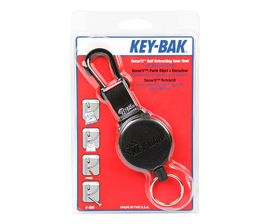 コードを引っ張り、手を離すと自然とコードを巻き取るキーリールを最初に発明したアメリカKEY-BAK社製のキーリールです。