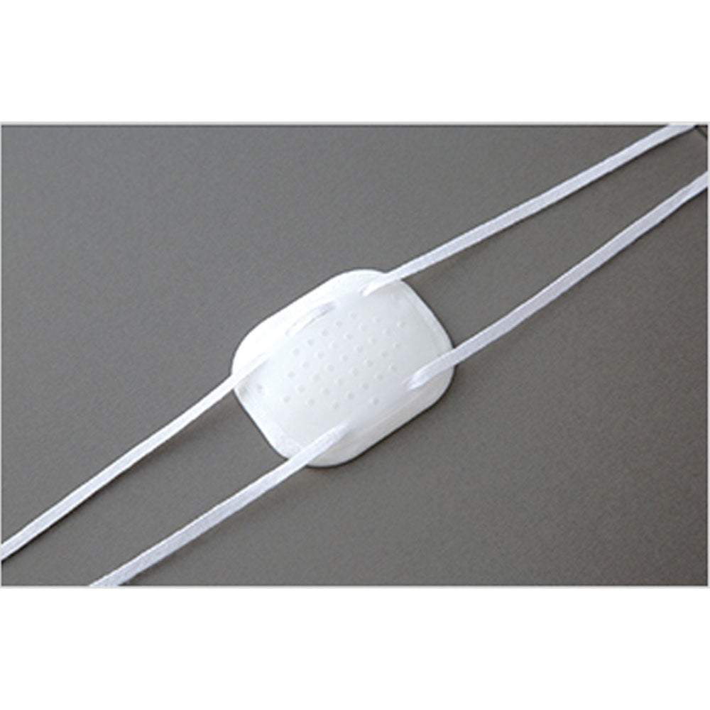 2.ひもの両端を固結びし、当てパッドを眼帯の中央に当て、装着してください。