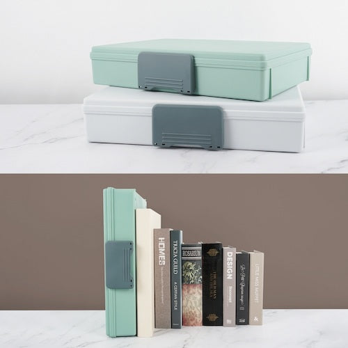 カタログ品番:HBP-200-U 特長:●角形2号封筒を折らずにそのまま保管できる収納力です。●本体は軽くて取り扱いやすいプラスチック製です。●鍵の紛失の心配がない4桁のダイヤル錠です。●10000通りからお好きな番号を何度でも設定できます。●ダイヤルで施錠しなくてもバックルを閉じることで、待ち運び時に上蓋が開くことはありません。●バックルでダイヤル部分を覆い隠せるので目に見える場所においても部屋に馴染みます。 仕様:●容量(L):5.6●色:ライトグリーン●本体寸法(mm)間口:370●本体寸法(mm)奥行:286●本体寸法(mm)高さ:77●有効内寸(mm)間口:350●有効内寸(mm)奥行:238●有効内寸(mm)高さ:68●収納書類サイズ:A4サイズ●施錠:4桁ダイヤル錠(任意設定可能)●角形2号封筒収納可能●お好みの番号が設定できる4桁ダイヤル●縦置き、横置き両用可能 材質/仕上:●ABS、SPCC 注意:●解錠番号を忘れてしまった場合、すべての番号を試す必要がございます。●パスワードはメモなどを残すようお願いします。