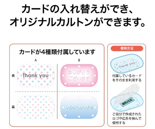 付属のデザインカード以外にも、オリジナルのロゴや広告を挟んで使用できます。色:透明