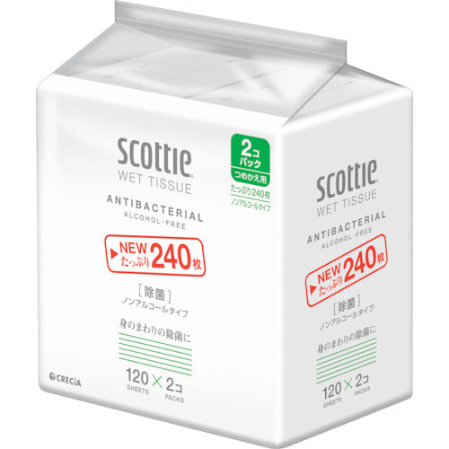 クレシア スコッティ ウェットティシュー除菌 ノンアルコールタイプ 120枚詰替え用2個パック 77026 1 PK