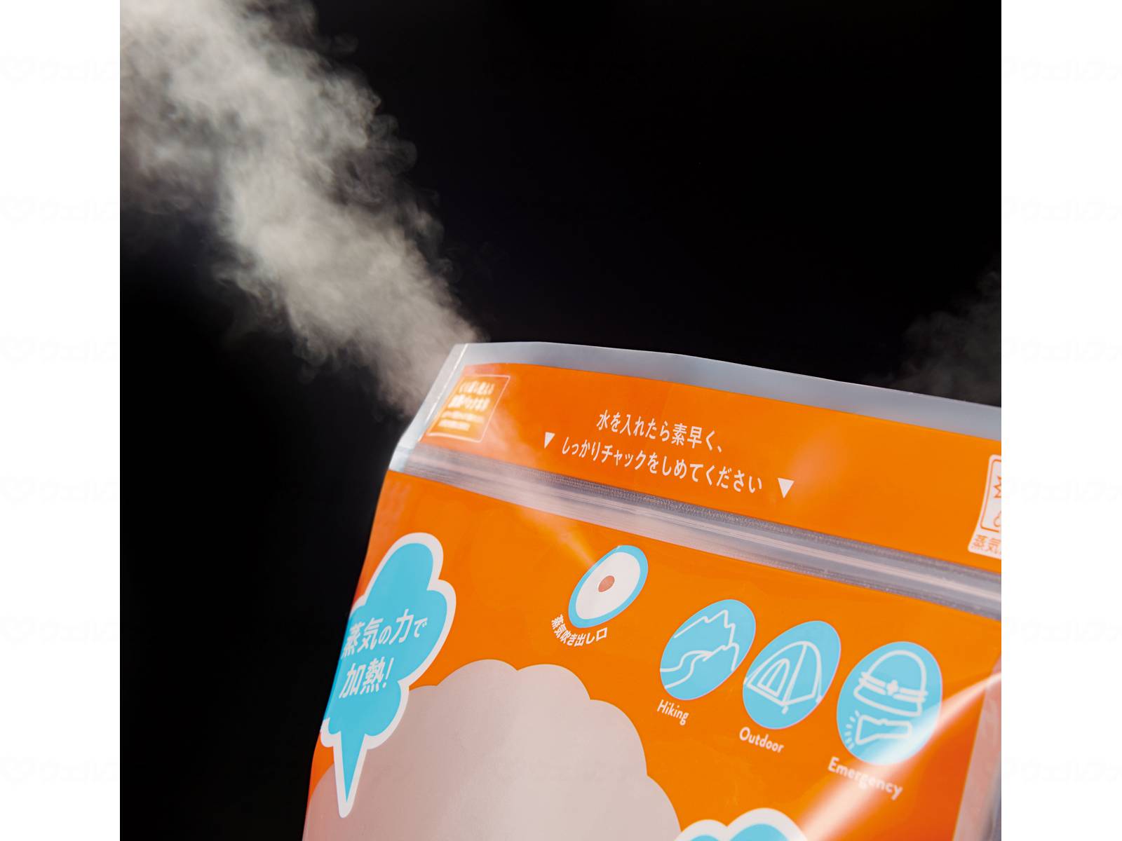 アウトドアや防災用にも使える火や電気を使わずに、蒸気のチカラであたためる!カンタン便利な食品加熱パック。