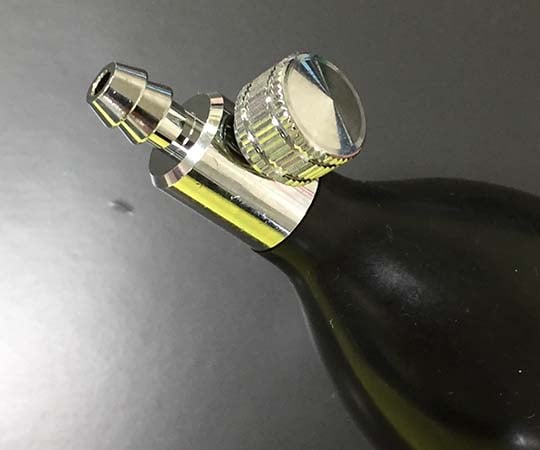 排気バルブ(先弁)は微調整しやすい構造のバルブを採用。 吸気弁(尻弁)にはホコリ等の吸い込みを最小限とする防塵ネット付き。材質: 吸排気バルブ:真鍮・ゴム球・ラテックス