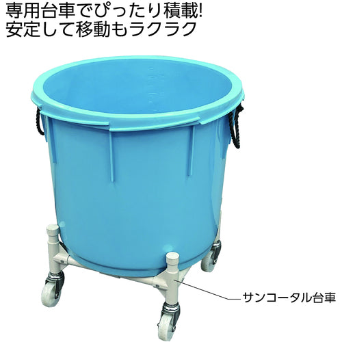 カタログ品番:SKTR-75-BL 特長:●プラスチック製の75Lサイズのタルです。●木製のタルと比較して、機能、強度が大幅にアップしています。●不意に外れることがないよう、フタ(別売り)の開閉はねじ式です。●内容量が分かるように、内側面は5L毎のメモリ付きです。●持ち運びやすいロープ付きです。●未使用時は積み重ねて保管できます。●サンコータル台車(別売り)に載せると簡単に動かせます。●ザル#50(別売り)をセットすると水切り容器となります。 用途:●漬物作り、野菜の水切り、水産物の加工などに。 仕様:●容量(L):77.5●色:ライトブルー●外形寸法(mm)外径:563●外形寸法(mm)高さ:470 材質/仕上:●ポリエチレン(PE)