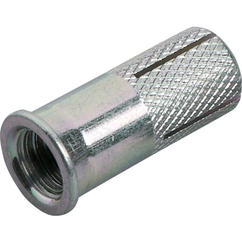 カタログ品番:GT-3040 特長:●コンクリート面に均一施工ができるので美観に優れます。●内部コーン打込み式で施工のバラツキが少ないです。●専用ハンドホルダーの使用により施工完了の確認ができます。●仕様によりボルト選定することで用途が拡大します。●機材(設備)の取り外し後もアンカーが妨げになりません。 用途:●電設工事、配管工事、冷暖房ダクト工事などに。 仕様:●ねじの呼び:W3/8●外径(mm):12.0●全長(mm):40●ねじ長さ(mm):15●ドリル径(mm):12.5●引張最大荷重(kN):14.7●箱入 材質/仕上:●スチール●表面処理:三価クロメート処理 注意:●引張最大荷重は、コンクリート強度Fc=21N/[[MM2]]時の値です。●施工には専用ハンドホルダーが必要です。