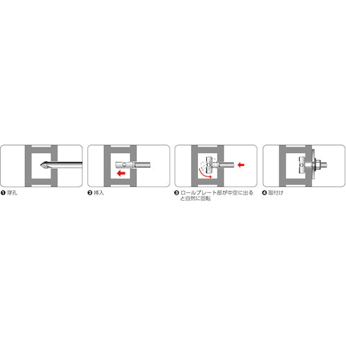 カタログ品番:ITA-1070V+D 特長:●プレート部がダブル構造(=2枚)で、はさみ込み対象に対し強い保持力を発揮します。●通常のITハンガータイプよりもロールプレートが短く、押出成形セメント板内部でも、無理なく施工できます。●押出成形セメント板用にロールプレート部を短くしているため無理なく施工ができます。●ECP協会認定品です。 用途:●押出成形セメント板用。●手摺・分電盤取付などに。●中空壁用●手摺の取付け、ブラケット取付け、分電盤取付け、掲示板などの中空壁への取付けなど 仕様:●ねじの呼び:M10●全長(mm):72●ねじ長さ(mm):43●下穴径(mm):15.0●ドリル径(mm):15.0●プレート長さ(mm):30●最大引張荷重(kN):4.26●試験母材:押し出し成形セメント板●必要中空部(mm):30●はさみ込み厚(mm):17〜43●首下長(mm):40●長さ(mm):72●箱入●アメラドリル1本付 材質/仕上:●スチール●表面処理:三価クロメート処理 セット内容/付属品:●アメラハンガー50本、アメラドリル(AMD-15.0X120)×1本●座付きナット 注意:●施工のために、プレート長さ以上の中空部が必要になります。●中空部寸法を確認の上ご使用ください。●穿孔作業は押出成形セメント板を破損させない専用ドリルのアメラドリルをご使用ください。