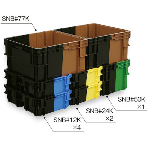 カタログ品番:20173000BK901BL503 特長:●同じ色どうしで重ねると中に物を入れたままスタッキングでき、色を交互に重ねるとネスティングできて省スペースです。●段積み時180°回転させ、色の方向を替えることにより、スタッキング、ネスティングが可能です。●ネスティング時は収納効率に優れ、空箱スペースの削減が可能です。 仕様:●容量(L):11.6●色:ブラック/ブルー●外形寸法(mm)間口:386●外形寸法(mm)奥行:280●外形寸法(mm)高さ:157●有効内寸(mm)間口:328●有効内寸(mm)奥行:222●有効内寸(mm)高さ:140●適合カード差し(別売):片長辺115、170型●適合コンテナ:SNコンテナーB#8K●ネスティング高さ(mm):79●同色同形状スタッキングタイプ 材質/仕上:●ポリプロピレン(PP)