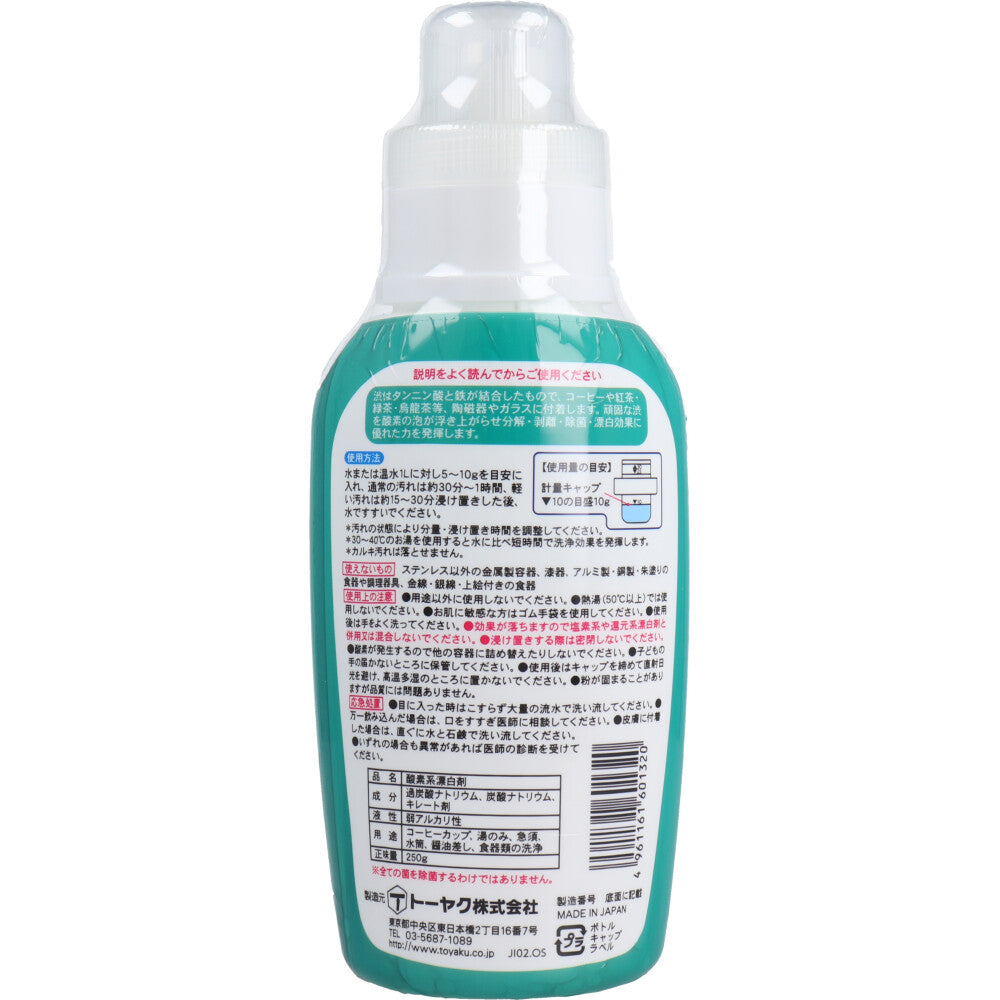 頑固な渋を酸素の泡が浮き上がらせ分解・剥離・除菌・漂白効果に優れた力を発揮します。