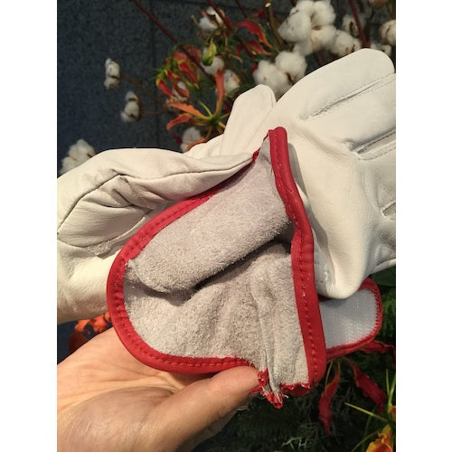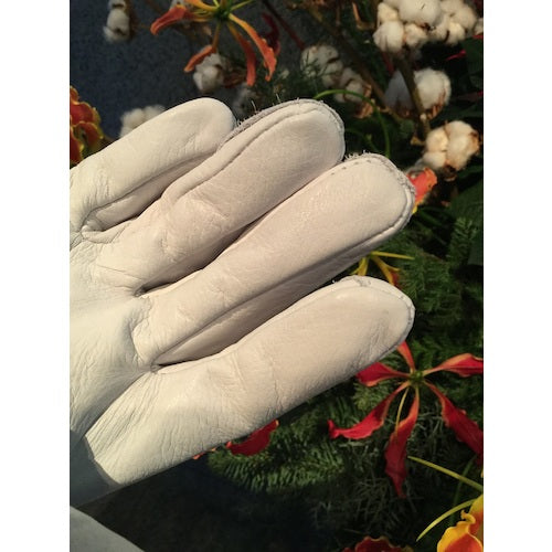 カタログ品番:CG717-SS 特長:●SS〜3Lサイズまで取り揃えています。●袖口マジック式でフィット感に優れています。 用途:●機械・プレス・荷役・運送など 仕様:●色:ホワイト●サイズ:SS●全長(cm):21.3●手のひら周り(cm):19.0●中指長さ(cm):7.5●厚さ(mm):0.8●袖口マジック止め式 材質/仕上:●牛本革