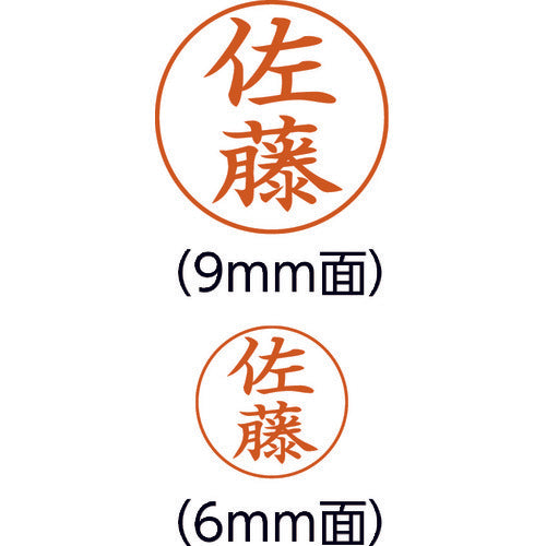 カタログ品番:XLR-9-5 特長:●手を汚さずに簡単補充が可能です。 仕様:●色:朱●適合印面:6mm用●サイズ幅(mm):9●サイズ奥行き(mm):9●サイズ高さ(mm):37.7●適合本体:ネーム6・ブラック8・ペアネーム・ネーム6キャプレ・簿記スタンパー●直径×高さ:Φ25×14mm