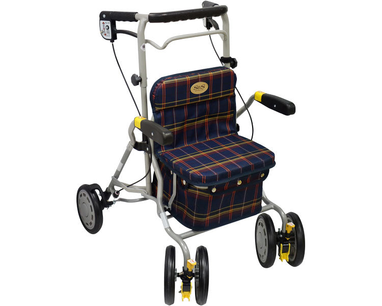 ●標準機能/折りたたみ、3WAYキャスター(360°・左右60°・固定)、手元ブレーキ、駐車ブレーキ、座面、杖・傘立て