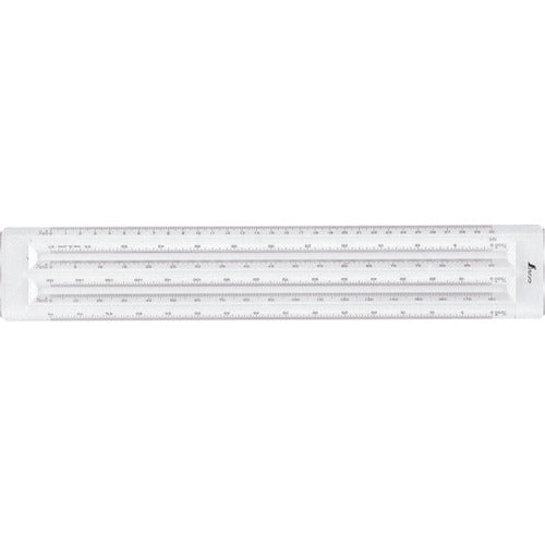 カタログ品番:70769 特長:●三角スケールの機能を持ったスケールです。●平らで透明なので、図面などの上に置いても下が見え、作業が楽に進められます。 用途:●レイアウト作業、線引き、長さ測定等 仕様:●伸縮率:1℃の変化で1mmに対して7〜8×10〜5mm伸縮 材質/仕上:●メタクリル樹脂 注意:●汚れた場合シンナー・アルコール等は使用しないで下さい。