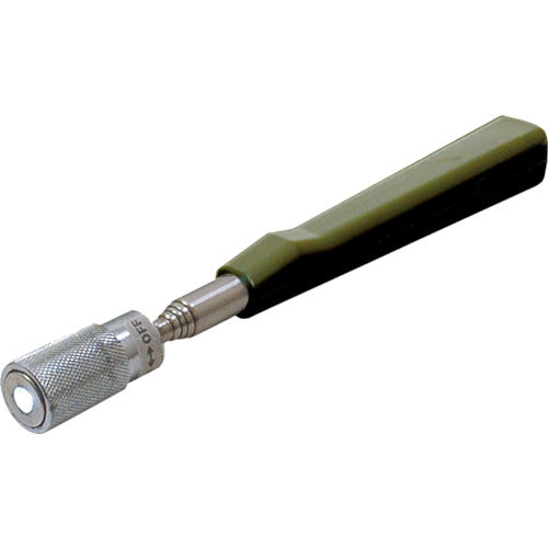 カタログ品番:72456 特長:●取りにくい場所へアンテナを伸ばし強力な磁力で金属片を拾えます。●高輝度・長寿命のLEDを搭載しています。●握りやすく滑りにくいゴム製大型グリップを採用しています。 用途:●金属拾い。 仕様:●吸着力(N):20●全長(mm):186〜660●マグネット径(mm):18●表面磁束密度(T):0.35●電源(V):ボタン型アルカリ電池(LR44)×3個(付属)モニター用●ライト付 材質/仕上:●マグネット:ネオジム磁石●本体:ステンレス、真鍮●グリップ:ゴム