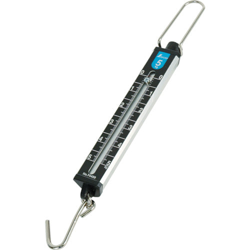 カタログ品番:74459 特長:●目盛板が平面だから読み取りやすいです。●調整方法が一目で分かる0点調整ねじです。 用途:●宅配便、工場内、農作物、水産物など、色々な目方の計量に。 仕様:●秤量(kg):5●最小表示(g):50●幅(mm):30●奥行(mm):25●高さ(mm):290●最小表示(kg):0.05●検定:対象外●ばね式●使用公差:ひょう量の1/2以下は±50g、ひょう量の1/2を超える±100g 材質/仕上:●外筒、内筒:アルミ●外筒端部、0点調整ネジ:ABS樹脂●ハンドル、フック:鉄 注意:●74488は校正不可となります。●明らかにひょう量より重すぎる物は測定しないで下さい。