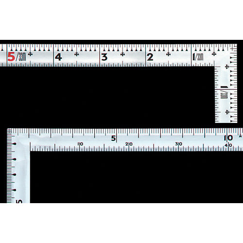 カタログ品番:10652 特長:●角が薄くケガキやすくなっています。●外側基点の内側目盛が付いています。 用途:●長さの測定、直角の確認やケガキ作業に。 仕様:●長辺(mm):320●短辺(mm):160●幅(mm):15●厚さ(mm):1.4●目盛仕様:cm●長さの許容差:±0.2mm以下●直角度:100mmにつき0.2mm以下●精度直角度:100mmにつき、0.1mm以下 材質/仕上:●ステンレス 注意:●電気に触れる恐れのある場所では使用しないで下さい。