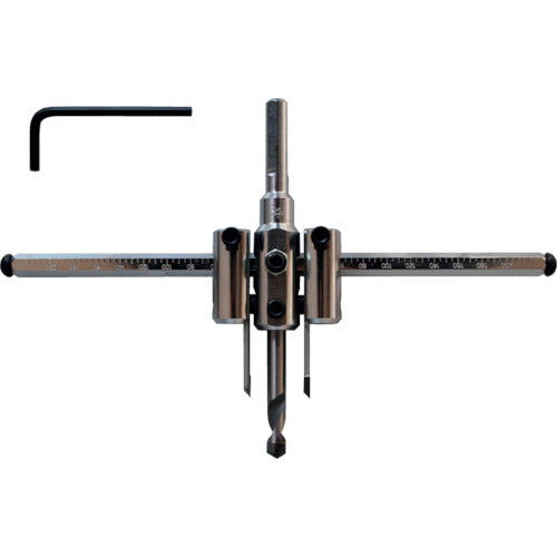 カタログ品番:36TL 特長:●穴径30〜120mmまでの加工が自由自在に行えます。●サイディング材・堅木への穴あけに最適です。 用途:●被削材:サイディング・木材・堅木。●ダウンライト、配管、ダクト等の穴あけ作業。 仕様:●加工穴径(mm):30〜200●軸径(mm):10●穴あけ可能深さ(mm):片側25mm・両側50●適合機種:電気ドリル●軸タイプ:三本溝●穴あけ可能深さ:片側25mm・両側50mm 材質/仕上:●センタードリル:炭素鋼・超硬チップ付●替刃:超硬●本体:炭素鋼(S55C) セット内容/付属品:●六角棒レンチ