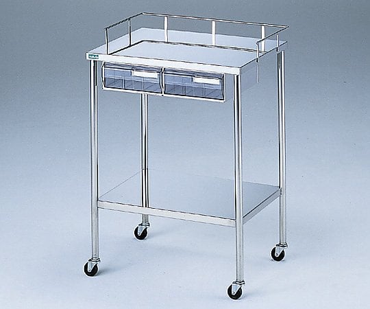 小物の収納に便利な引出しを標準装備した使いやすいカートです。材質:本体/ステンレス(※SUS304と同等の特性を持ち磁性を有するステンレス鋼材です。)、引出し/樹脂