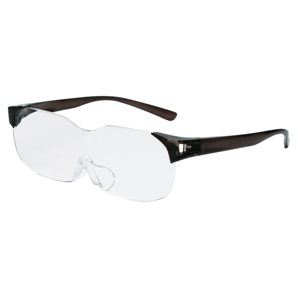 枠のないレンズで広い視野を確保でき、眼鏡の上からも掛けられます。