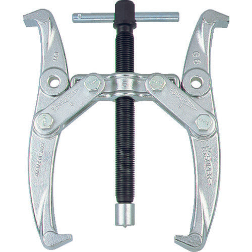 カタログ品番:G-6 特長:●機械や自動車の解体修理におけるベアリング、プーリ、ギヤなどのあらゆる引き抜き作業に最適です。●スチールボール入りアダプタにより、摩擦抵抗を大幅に軽減します。(G-3を除く)●ギヤ・プーリ引き抜き専用工具です。 仕様:●アーム本数:2●適合プーリ(mm):60〜150●爪の届く長さ(mm):150●破断荷重(kN):60●押しねじ六角サイズ(mm):19●爪先端厚さ(mm):5.3